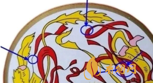 ②酒杯:两个仙女托的酒杯有一处暗记,连接处放大看有一个缺口,假酒多为相连。