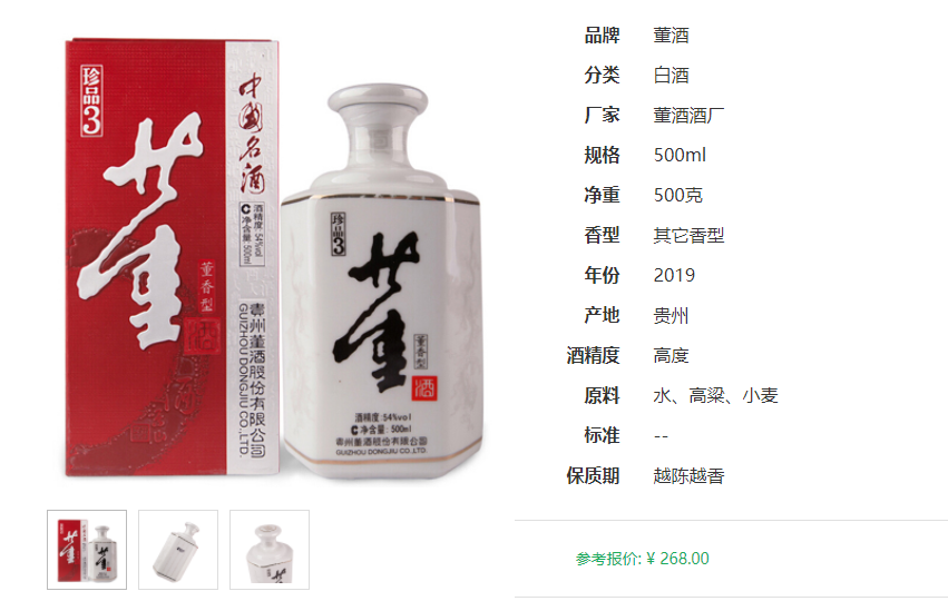 贵州董酒54度珍藏3董香型500ml单瓶装