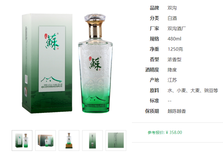 江苏省双沟酒苏酒5A级42°度浓香型纯粮食白酒480ml*4瓶一整箱装的京东官方价格是1300元,一瓶装的官方零售价格大概358元。双沟苏酒5A级42度怎么样呢?接下来详细给大家介绍。