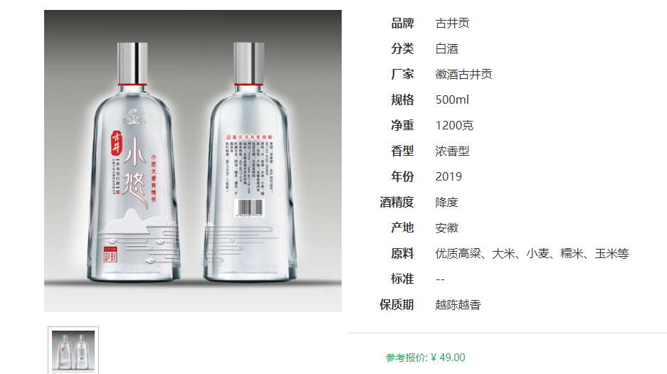 安微古井贡酒古井小悠银悠42°度口感浓香型白酒500ml*6瓶一箱装的京东官方价格是238元,一瓶的京东官方零售价格大概是49元。古井小悠银悠怎么样呢?接下来详细给大家介绍。