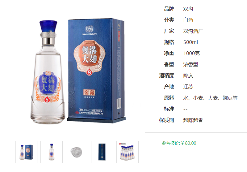 江苏省双沟酒大曲窖藏8普通版42°度浓香型喜宴婚宴白酒500ml*6瓶一整套装的京东官方价格是430元,一瓶装的官方零售价格大概80元。双沟大曲窖藏8普通版42度怎么样呢?接下来详细给大家介绍。
