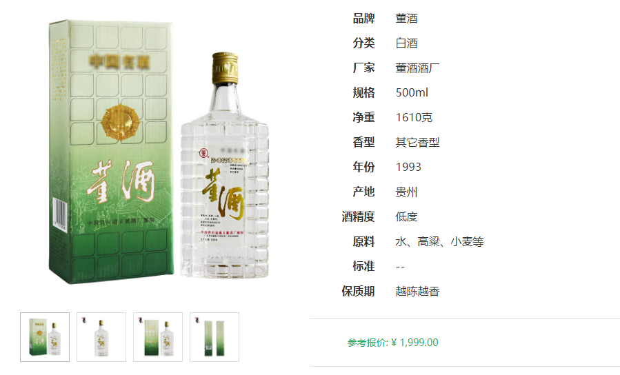 贵州董酒1993东京博览会金奖38°度董香型百草入曲纯粮酿造白酒500ml一瓶装的官方零售价格大概1999元。贵州董酒1993东京博览会金奖怎么样呢?接下来详细给大家介绍。
