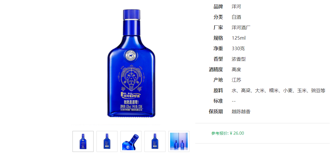 洋河King酒52度口感绵柔浓香型白酒125ml*6瓶一箱礼盒装的京东官方价格是155元,一瓶的京东官方零售价格大概是26元。洋河King酒52度怎么样呢?接下来详细给大家介绍。
