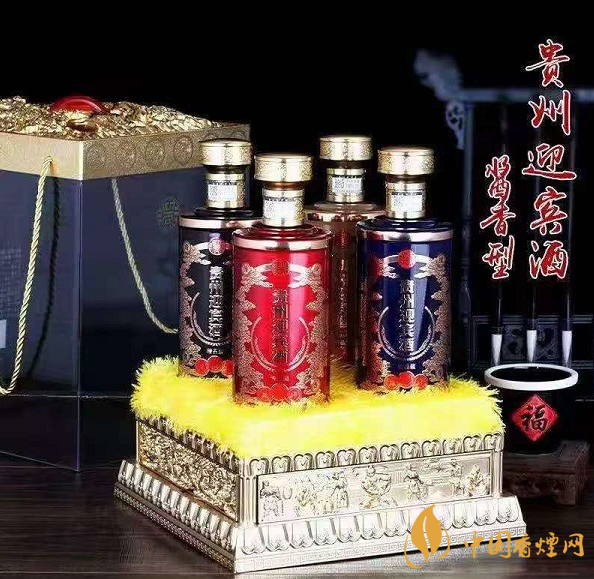 贵州迎宾酒精品套装,高档的手提礼盒,500ml*4瓶装,蓝、黄、红、黑四色瓶身,搭配鎏金图案,精致优雅,细节处理完美,适合亲友馈赠。市场零售价格不贵,价格亲民。