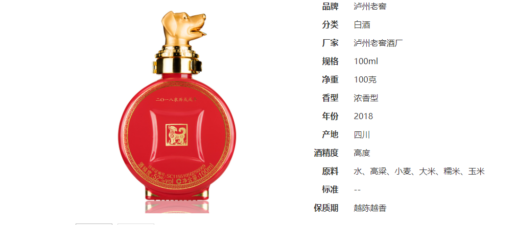 泸州老窖52度封藏大典生肖系列(狗年)100ml装