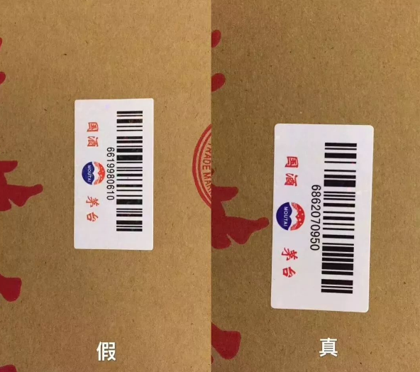 真茅台的包装箱编号是由喷码机喷上去的,数字有断连,而假茅台的编号显的非常清晰,就像打印的一样。