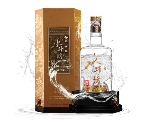 2、瓶子的身上水井坊标版采用的是喷砂毛面,“水井坊”这三个字是珠光金色(假金)。