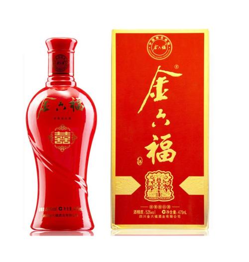金六福酒:五粮液酒厂系列品牌, “金”代表权力富贵和地位;“六”为六六大顺;“福”为福气多多。五星级金六福设计新颖,其开盒时“开门见福”,取酒时“揭福”,酒瓶如古钱袋,寓意吉祥,处处让人心情开朗。六福酒融汇了中国传统的民族特色和精湛的酿造工艺。与五粮液酒同工艺、同原料,具有香气悠久、味醇厚、入口甘美、入喉爽静、酒体丰满谐调的独特风格。