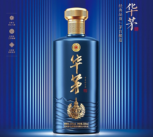 又名:茅台华茅(蓝),贵州茅台股份有限公司出品,选本土优质糯高粱、小麦、水为原料,采取大曲酱香传统工艺精心酿制,储存,勾兑而成,未添加任何香气、香味物质,具有酱香典雅、酒体丰满、醇和协调、回味长、口杯留香久的特点。