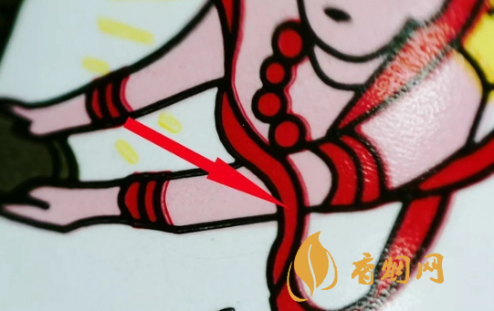 再看看飘带是否穿过手臂(假酒)还是飘于手臂之上(真酒)。穿过手臂则是假酒!