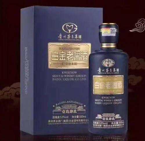 白金酱酒产于中国贵州省仁怀市茅台镇茅台酒厂,以本地优质糯高粱、小麦、水为原料,利用得天独厚的自然环境,采用科学独特的传统工艺精心酿制而成。端午踩曲,重阳投料,九次蒸煮,八次发酵,七次取酒,高温制曲,高温取酒,长期窖藏,具有酱香突出、优雅细腻、酒体醇厚、回味悠长、空杯留香的特点。白金酱香型白酒具有茅台酒的独特风格,不上头、不辣喉、不烧心、不口干。