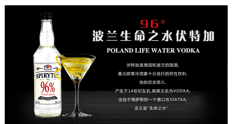 8、现货spirytus生命之水伏特加96度高度烈酒波兰进口洋酒 500ml 价格:¥26.00
