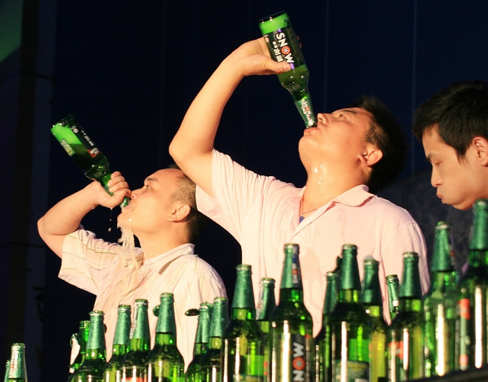 喝酒要本着先易后难的原则,一上来就喝高度的白酒,没两口就晕倒了。最好是先从酒精度数低的啤酒或红酒练起,一点点地锻炼,等到对酒精不那么敏感了,再去接触度数高的白酒。