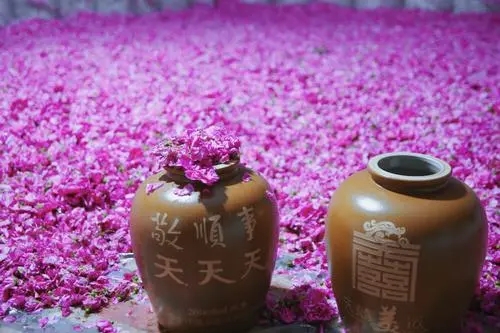 1、配方:鲜玫瑰花3500克,白酒15000克,冰糖2000克。