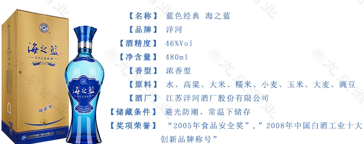 洋·河蓝色经典 海之蓝绵柔型浓香白酒42度480ML