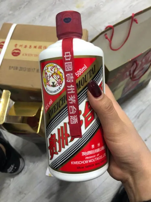 飞天茅台酒是一款酱香型白酒,采用高温制曲,二次投料,堆积发酵的生产工艺,一般一年为一个生产周期。取酒后经过勾兑、陈贮而成。其酒味呈酱香、窖底香、醇甜香而具独特风格。酒体完美,香气幽雅,酒味丰满、醇厚。