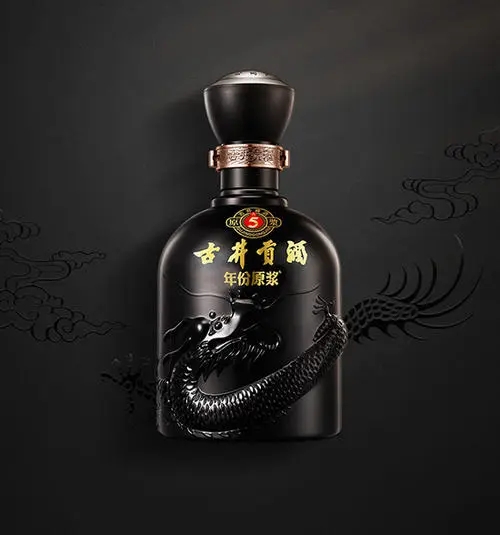 外盒采用定位纸材质,增加防伪功能;瓶身采用玻璃喷涂工艺,棕黑色,健康环保;瓶型似盘龙玉玺,古朴稳重,寓意皇室贡品和权贵象征;瓶体烤花。
