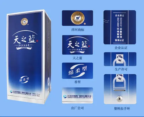 3、海之蓝42度480ml 天之蓝52度棉柔型白酒整箱批发包邮 价格:400.00