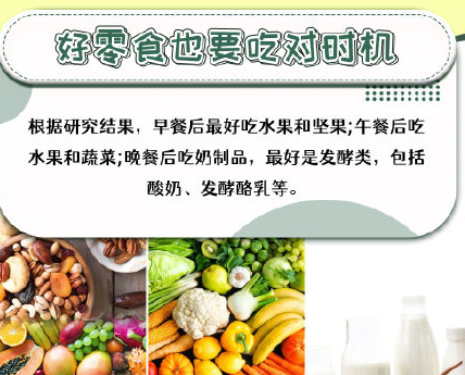 零食一般在两顿正餐之间吃比较合适,离正餐约2小时左右即可。