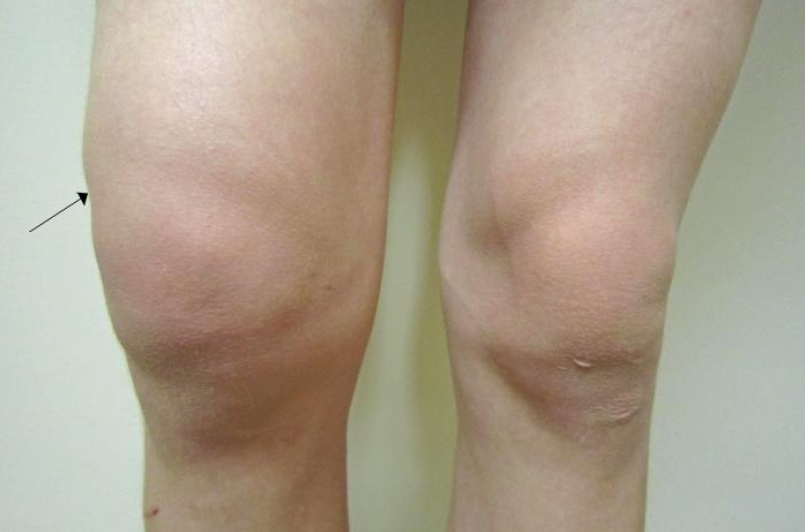 膝盖积液的症状主要表现为肿胀。膝盖积液是关节腔内的液体增加,实际上与普通膝盖或下肢肿胀有本质的区别。