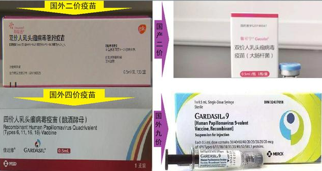 国产的二价HPV疫苗名称为:馨可宁;国外的请看文中图片
