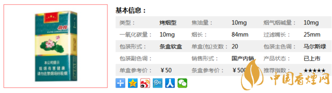 | 类型 :烤烟型 | 焦油量 :10mg | 烟气烟碱量 :10mg | 一氧化碳量 :10mg |