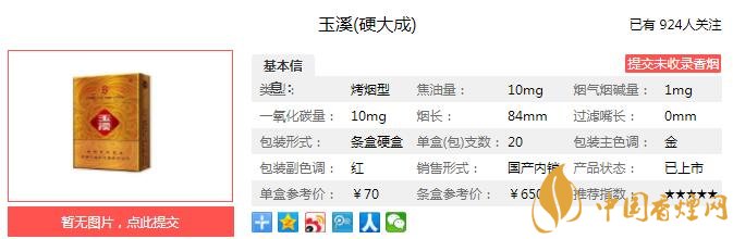 大成玉溪,汇集红塔人50年造烟智慧和工艺,背负着500年的历史使命,开创中式卷烟“清香盛世”。大成玉溪,以其八部天香,构筑世纪清香经纬;烟支的丝缕之间,都浸透了自然的灵性与科技的精妙。八部天香,以艺术的节奏,完成对清香的诠释,重新定义中式卷烟清香标准。经jrs直播小编市场调查玉溪硬大成售价为70元/包。