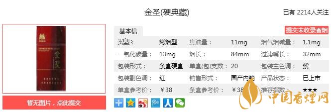 秉承自然灵秀之气,形神俱清:选用国内云贵高原小产区清香型优质烟叶和世界著名烟叶产区名贵烟叶,复烤后选用最醇和之中部,经天然山东储藏三年以上。本草萃香,优雅飘逸: 配以第二代“金圣香”本草萃取精华和美国IFF香精香料精调而成。烟气整体平衡协调,想起优雅飘逸、自然醇和、透发感极强。经jrs直播小编市场调查金圣典藏售价为38元/包。