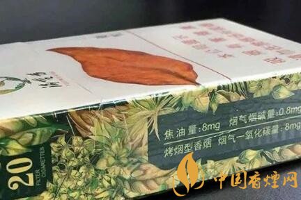 看名字,就能猜出个大概,这是重庆烟。只是烟盒正面图案上一片大大的烟叶,却令我不由得想到了“黄金叶”这个品牌。烟盒正面色调为乳白色又渗进了些浅绿色,整体为浅绿色,预示着这款香烟口味应该偏淡。侧面的理化指标为8mg,也说明了这一问题。