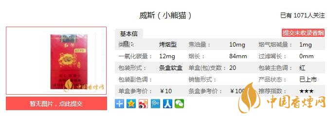 三、威斯小熊猫香烟参数