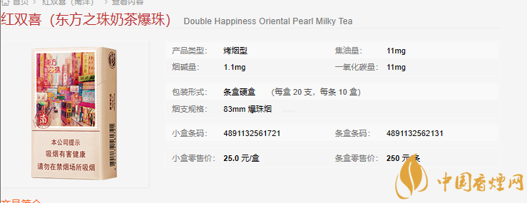 红双喜东方之珠奶茶爆珠这款香烟结合了奶茶的特色,香气呈现出一种浓浓的奶香味!一经上市就得到人们的广泛关注!而且这款香烟是属于爆珠款式的,众所周知,爆珠是现在最流行的香烟款式!那么这款东方之珠奶茶爆珠到底怎么样呢?让我们来看看网友怎么说!