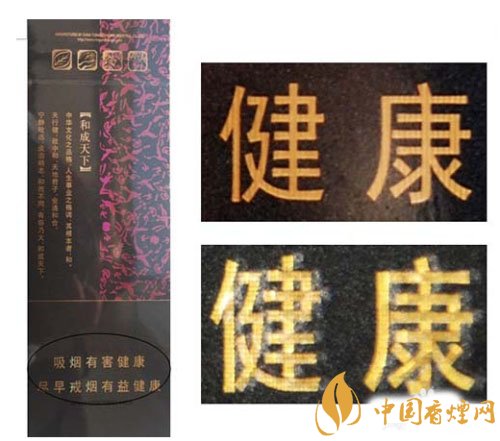 真烟采用超细线防伪,线条交叉处条纹清晰,不粘连;假烟超细线处印刷粗糙,交叉处粘连、模糊。