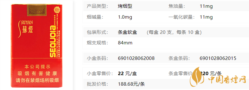 五星红杉树降焦线明显,烟丝湿度较为合适,填充也饱满,嗅闻烟支有淡淡的苏系调香,貌似莫名的果香透着一丝酒香。烟丝紧实,不会出现掉渣的情况,总体不错。下面便是苏烟(五星红杉树)的基本参数:焦油量:11mg 烟碱量:1.0mg 一氧化碳量:11mg。
