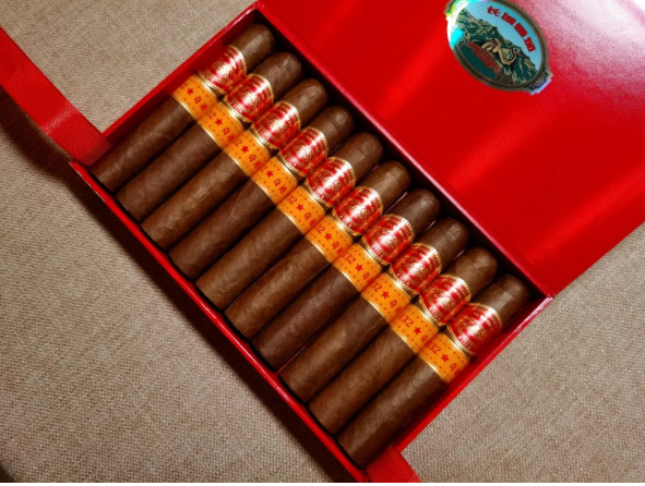 内盒排列为10支雪茄,开盒直面感受到的是平整且油亮的茄衣,从头到脚:茄帽、茄标、茄脚切口等等细节之处很好的诠释了长城雪茄的精湛功底。