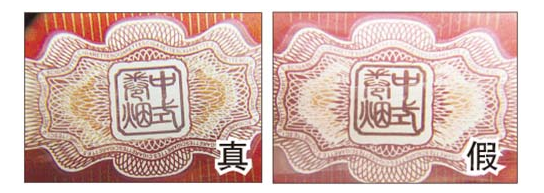 真烟标签纸用色均匀,且浓而鲜艳;假烟标签纸粗糙,色彩不均,有些地方甚至没有上色。
