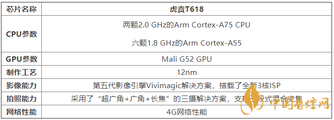 虎贲T618采用1 2nm制作I艺,为用户带来4G的网络性能,为用户提供入「]处理器性能CPU参数