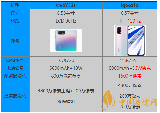vivoY52s和iqooz1参数对比 哪款手机更好