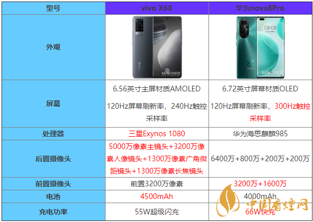 vivoX60和华为nova8Pro参数对比 哪款手机更值得入手