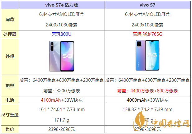 总结:两款屏幕素质差距不大,但vivo S7会有更高的屏占比,外观上也更加轻薄。