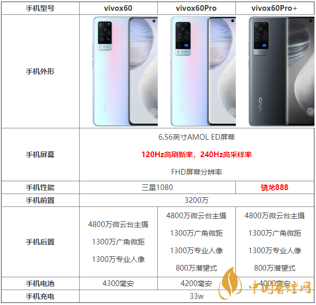 小结:这三款手机的屏幕参数相同,为用户带来120Hz的屏幕刷新,为用户带来更好的手机屏幕色彩展示