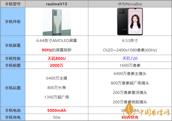 realmeV15:采用了后置三摄模组,6400万主摄+800万长焦+1300万超广角,前置:2000万像素