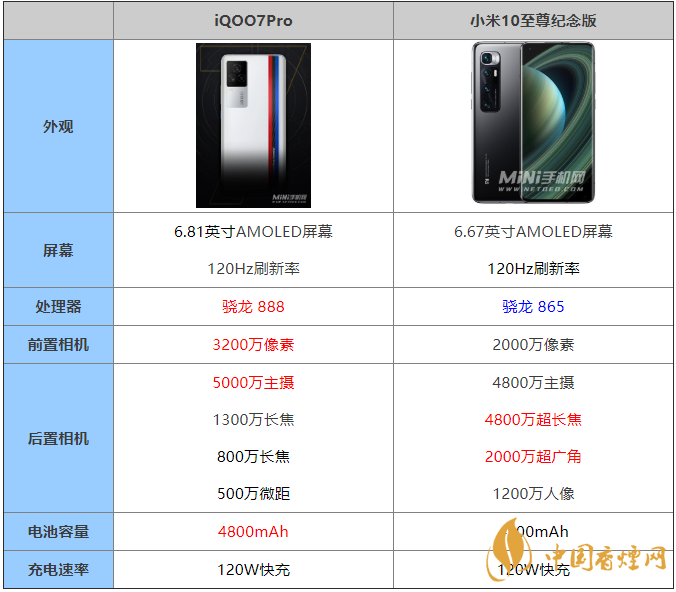 在都支持120W的疾速闪充基础上,IQOO7Pro的4800mAh电池容量更大。