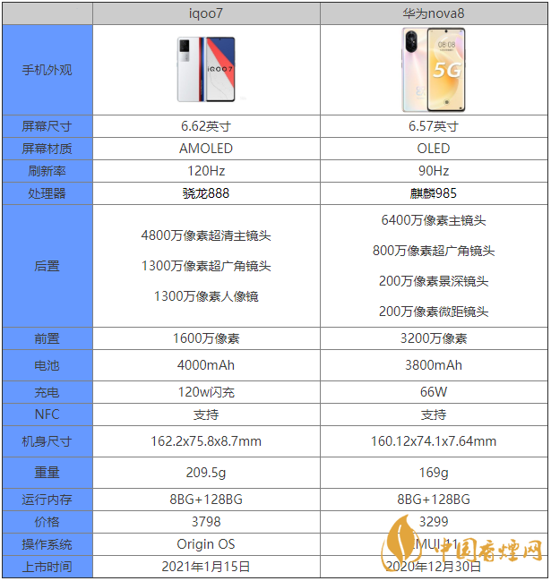iqoo7和华为nova8参数配置对比 哪款手机更值得入手