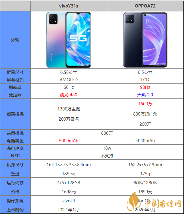 vivoY31s和OPPOA72哪个好?许多朋友对比这两款手机都十分关注,那么vivoY31s和OPPOA72有什么区别?哪款手机更值得入手?接下来jrs直播小编给大家带来vivoY31s和OPPOA72的参数对比,感兴趣的朋友一起来看看吧!