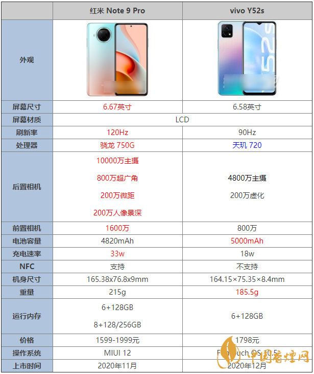 小结:红米Note9Pro的优势在于充电速率,vivoY52s的电池容量会更大些。