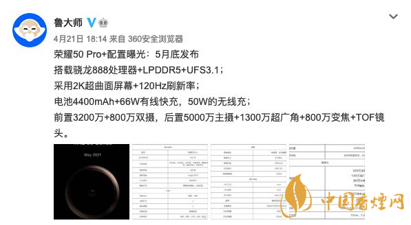 以上是小编整理的有关荣耀50pro最新消息和荣耀50pro参数配置的信息,相信在座的朋友们听到小编的介绍有所认识,但是小编在这里提醒一句以上信息整合于网络,更多最新最实用的资讯请持续关注jrs直播。
