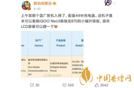 该机型可以看作iQOONeo5的低配版本,iQOONeo3的升级版。