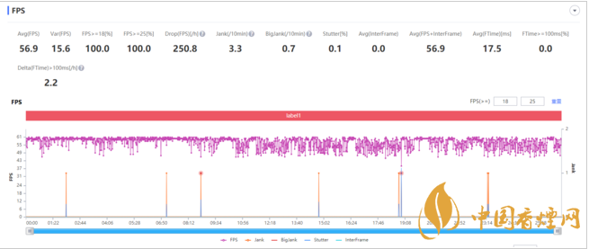 游戏实测帧率如上,可能是因为我们手上是测试版本固件的原因,虽然平均帧率达到56.9FPS,但波动比较明显,虽然最低帧率也有39FPS以上,基本满足流畅需求,但稳定性对旗舰机型来说还有优化空间。