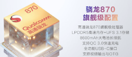 搭载旗舰处理器骁龙870,可以为用户提供很好的性能体验