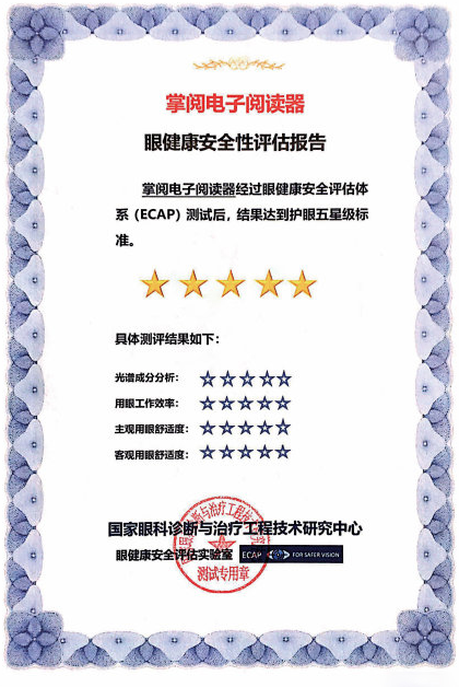 屏幕方面,配备6英寸E ink高清墨水屏,分辨率为1024*758 (212ppi),采用了全新的墨水膜技术,刷新速度更快,阅读显示细腻兼顾护眼;且通过了国家眼睛健康安全评估体系(ECAP)护眼五星的测试。